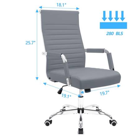 Upgraded seat: 3.15 inches thick padded seat for comfortable seating. Material: the smooth, pliable leather surface with ribbed stitching detail gives an upscale, luxurious feel. Higher back and lumbar design offer long time support from lumbar to head, provide continuous comfortable working time! Flexible adjusting: 360 degrees swivel design and adjustable height from16.7" to 19.9". Can meet various working occasions. Great office chairs in office, conference, home, colleague, reception desk, etc. Offer extra comfort for a long time.