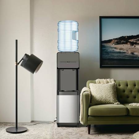 * Euhomy water coolers(11.4*11*36.5 in) is a top-mounted water dispenser ,cold (2.5L/H) and hot (5L/H) dual spouts, and there is a hot/cold water switch on the back of the dispenser, which allows you to choose cold water, hot water, or ambient water according to your needs.