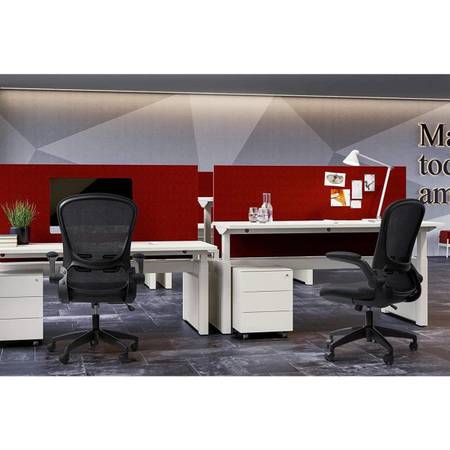 New Office Mid-back Mesh Chair Ergonomic Office Chair Meeting Room Chair with Lumbar Support and Flip-up Armrests, Black