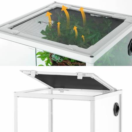 * 【Well Ventilated】The top cover of this front opening terrarium is removable, the mesh screen provides plenty of ventilation for optimum airflow and allows full spectrum, UVB and IR light penetration. The tough screen top can place reptile lamp fixture.