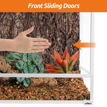 * 【Safety Front Sliding Doors】 Front opening transparent glass doors for perfect viewing, open easily to feed, clean or add decoration . With security lock to prevent reptile amphibian pets escape.