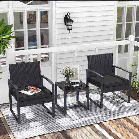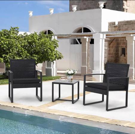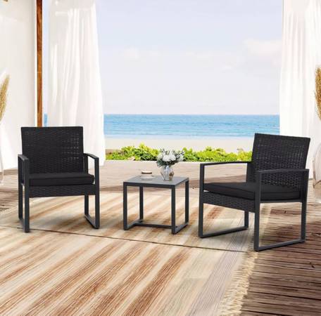 New 3-Pieces Modern PE Rattan Chair Patio Furniture Conversation Sets Patio Set Bistro Set for House Porch Garden Backyard Outdoor