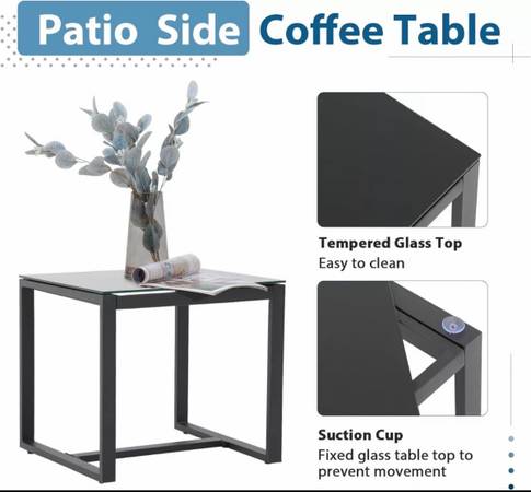 Usage scenario: This chair and table set can be used wherever you need, living room, porch, balcony, yard, garden, lawn, poolside, etc. The table is covered by tempered glass, thus the tea table can be put indoor or outdoor.