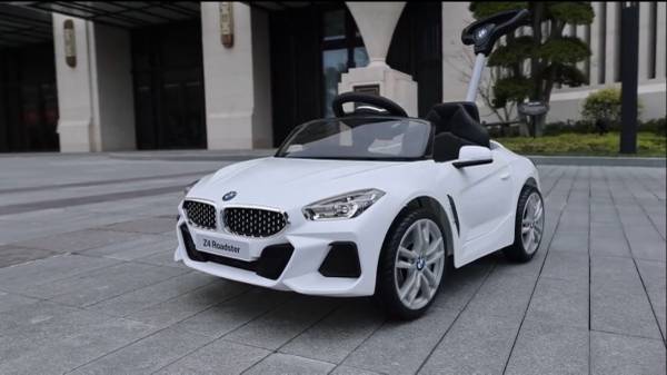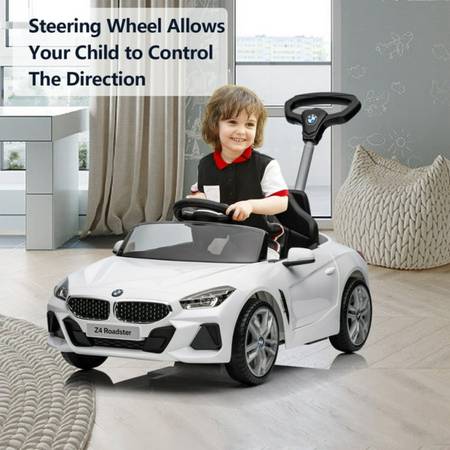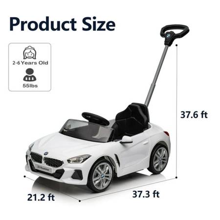 * With cool and stylish look, built-in music and a horn button (2 x 1.5V AA batteries required, not included), ultimate kids push car features the realistic design of the BMW Z4 car for toddler! The silent wheel gives you a quiet smooth ride!