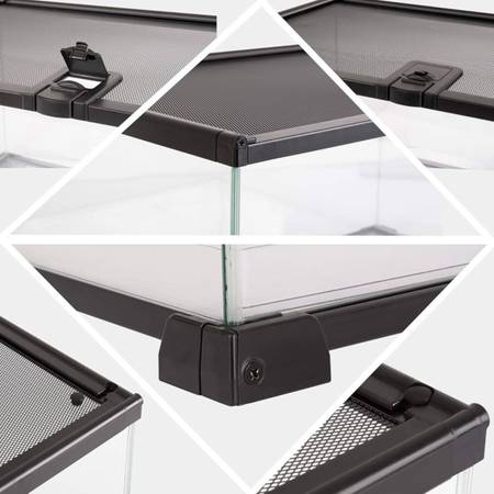 * Full screen top with a feeding hole,which is for ventilation and allows light and UVB penetration;