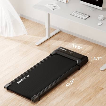 2 1 walking pad the speed range of this treadmill is 0.5-4.0 mph. at slower speeds, you can place it under your desk and walk while working, thereby relieving muscle soreness caused by prolonged sitting. When there is a need for further exercise, you can gradually accelerate and jog to better optimize your body curves. Shock absorption the running strap of this treadmill adopts a 5-layer anti-slip design, and there are also shock-absorbing foot pads at the bottom, which have good shock absorption and buffering ability. It can alleviate the impact on joints and protect your knees during exercise. Powerful silent motor this treadmill is equipped with a powerful 2.5 hp motor that can withstand a weight of 220 pounds, ensuring stable operation and being very quiet without making any noise. Therefore, you can exercise anytime, anywhere at home or in the office without disturbing others. Remote control led display the LED screen can record time, speed, and calorie distance in real-time, allowing you to better grasp your exercise data and make appropriate adjustments based on your exercise status. You can also use the remote control to adjust the speed at any time, and the sensitive remote control device will bring you a better experience.