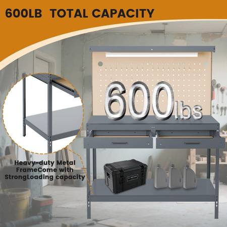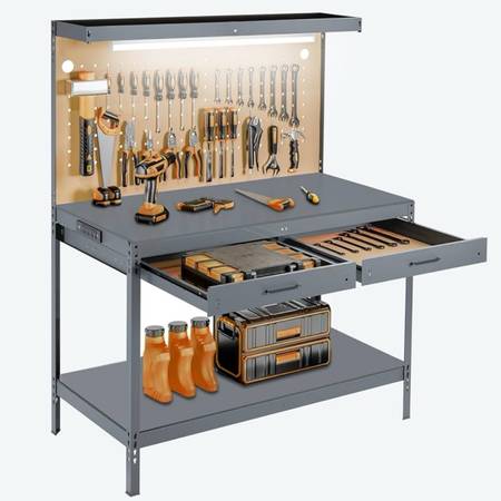 New Workbench, A3 Steel Workbench with Drawers, 600 lbs Capacity Pegboard, Work Tool Bench, Workbench for Garage, Workshop, Basement
