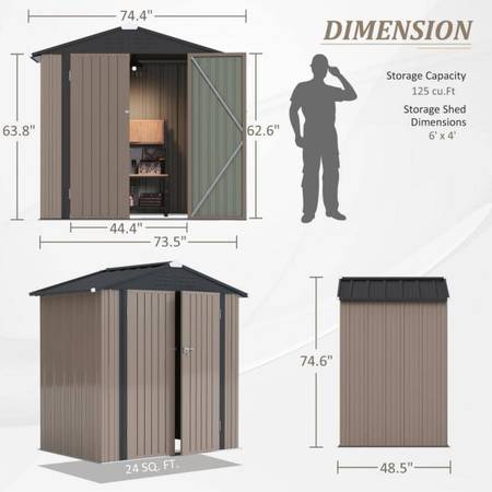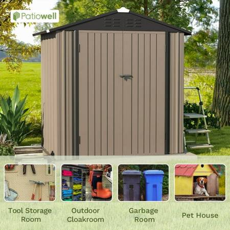 * Multifunctional Outdoor Storage Shed: The large-capacity metal shed has multiple uses. It can store most of the outdoor tools you would normally use, such as lawn mowers, bicycles, tool boxes, etc. If you have pets, it can also be used as a pet house to keep out wind and rain and provide enough warmth. It can also be used as a trash room to keep your yard clean and tidy.