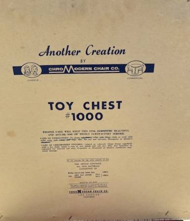 1960’s Retro Vinyl Toy Box by Chromodern Chair Company. Due to its age there are some tiny tears (see pictures), otherwise good condition. Length: ~ 32 Depth: ~ 16” Height: ~ 14” Price: $75 CASH...