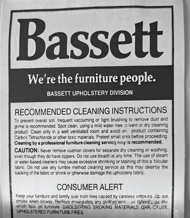 Fabric shows signs of wear on pillows, mostly on the single side of pillows.Looks good, doesn't smell but might need careful cleaning. Minor paint defects on one arm.