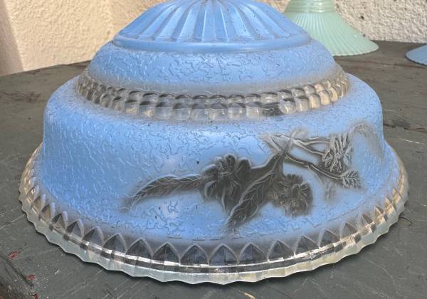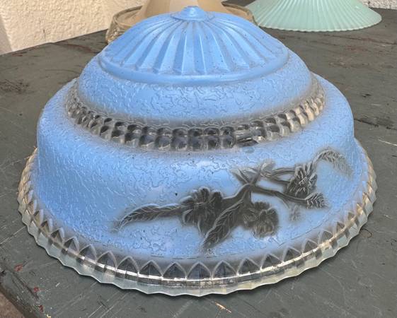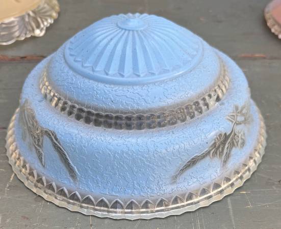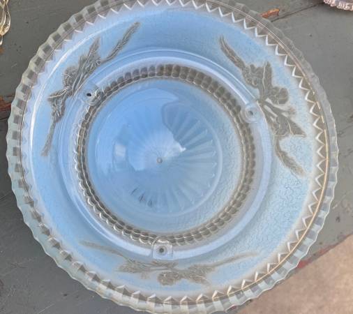 Beautiful Light Blue Art Deco Glass Hanging Ceiling Light Shade with 3 Chain Holes. Very good condition. Diameter: ~10” Height: ~ 4” Price: $25 CASH ONLY Please click on the 'more ads by this user'...