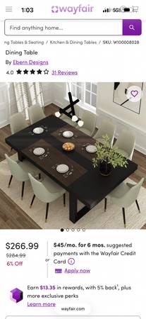 Just bought it realized it’s too big for my space. Willing to negotiate but please no low blows. Also willing to deliver for a small fee of course. Chairs not included.