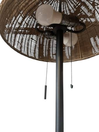 Floor Lamp with Rattan Shade. There are 2 lights; you can turn one of both on. Good condition Shade: ~ 16x12 Diameter of base: ~ 10 1/2” Height: ~ 62” Price: $125 CASH ONLY Please click on the 'more...