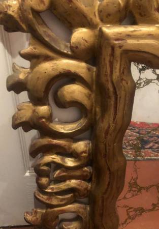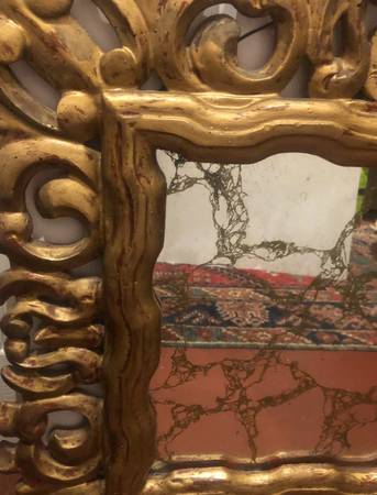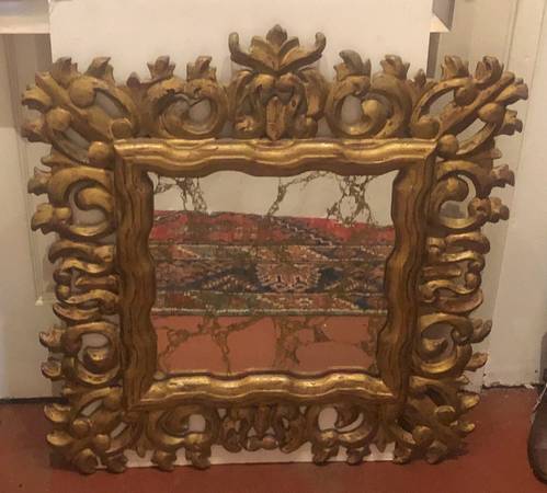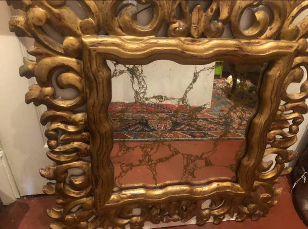 Hollywood Regency MCM Decorative Molded Poured Plastic Square Mirror; gold leaf with red undertones. Good condition. Length: ~ 27” Height: ~ 29” Price: $50 CASH ONLY Please click on the 'more ads by...