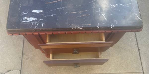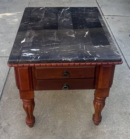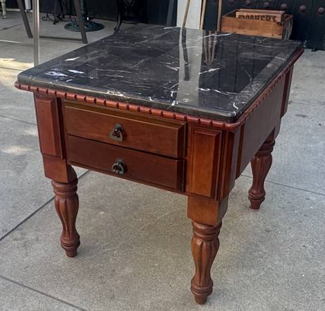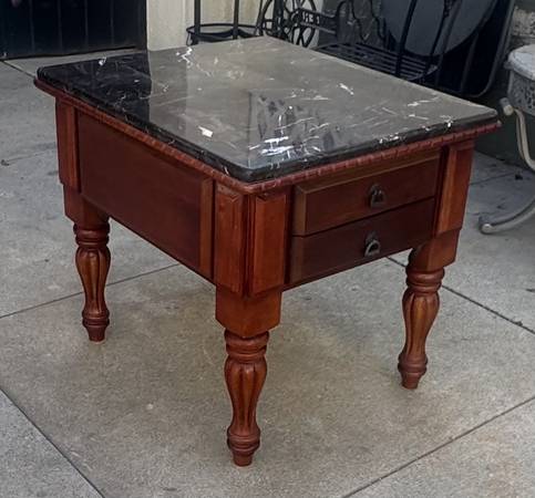 Marble Top 2 Cherry Wood End Table / Nightstand. Nice condition. Length: ~ 26” Depth: ~ 30” Height: ~ 26 ½” Price: $125 CASH ONLY Please click on the 'more ads by this user' link to see other items...
