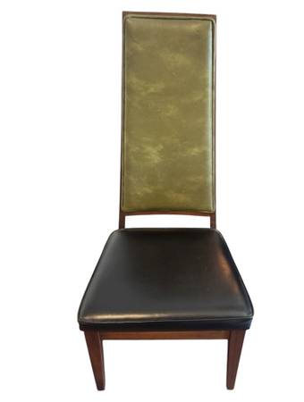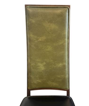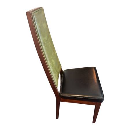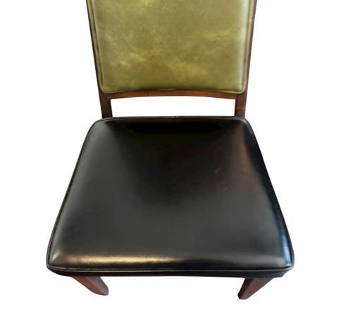 Mid Century Walnut & Vinyl 2 Tone Green & Black Chair. Nice condition. Seat Length: ~ 18” Seat Depth: ~ 17” Chair Height: ~ 45” total; ~ 18” from floor to top of seat Price: $125 CASH ONLY...