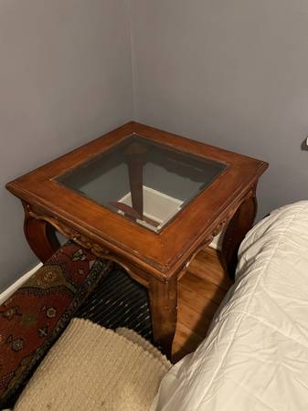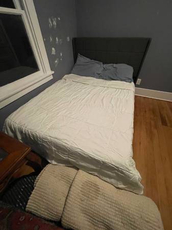 I'm moving and everything must go! Items listed below including price OBO: - Full size bedframe and mattress - $50 - Dining room table incl. 4 chairs - $75 - Square Side table w/ glass and wood -...