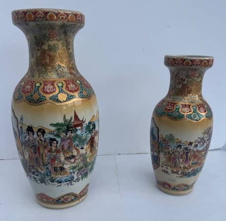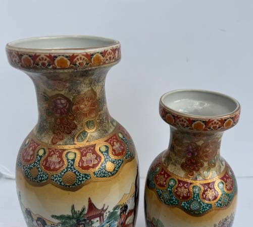 Pair of Matching Gold Satsuma Vases. never used. Excellent condition. Vase 1 Height: ~ 12” Vase 2: Height - 10” Price: $75 CASH ONLY Please click on the 'more ads by this user' link to see this and...
