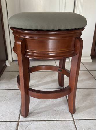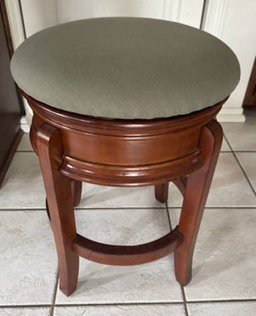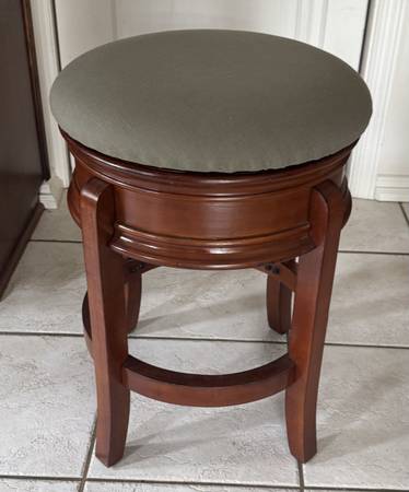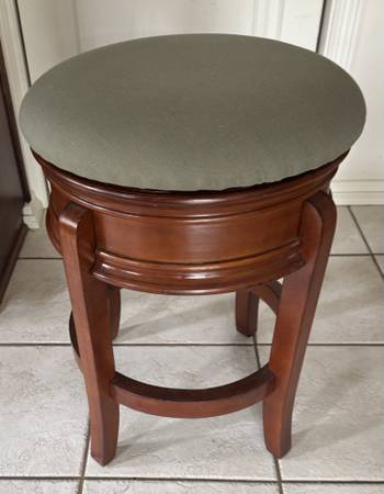 Round Wood Counter Stool. Nice condition. Diameter: ~ 18” Height: ~ 23” Price: $40 CASH ONLY Please click on the 'more ads by this user' link to see other items I am selling.