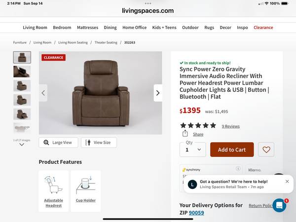 Sync Power Zero Gravity Immersive Audio Recliners With Power Headrest Power Lumbar Cupholder Lights & USB | Button | Bluetooth.