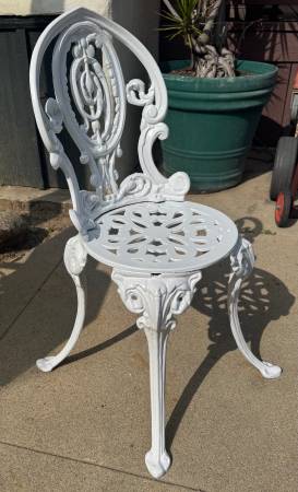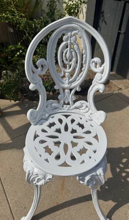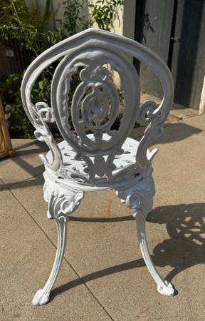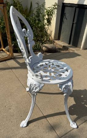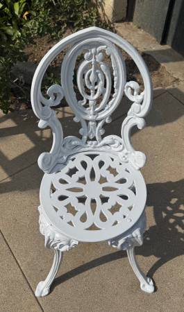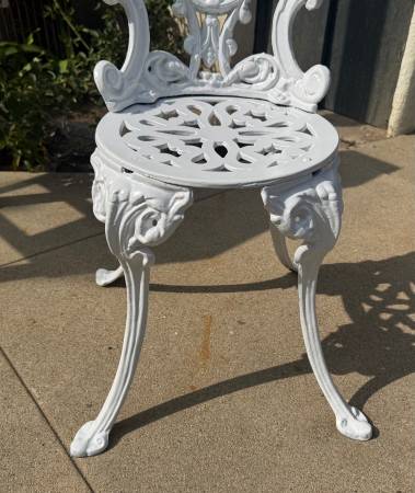 Vintage Victorian Style White Cast Iron Fancy Garden Chair. Good condition. Length: ~ 13” Depth: ~ 13” Height: ~ 30” total; ~ 15” from floor to top of seat Price: $125 CASH ONLY Please click on the...