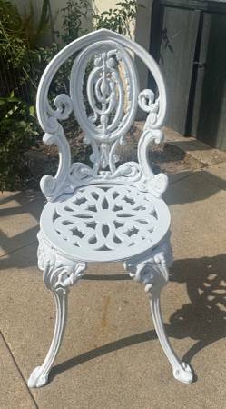 Vintage Victorian Style White Cast Iron Fancy Garden Chair -...