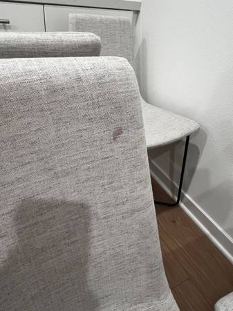 There is a small stain on one of the chairs, but beyond that, everything is in excellent condition.