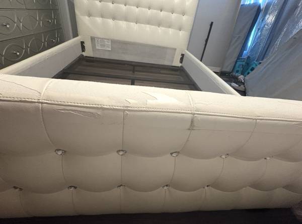 White Leather Queen Bedframe - furniture - by owner - sale -...