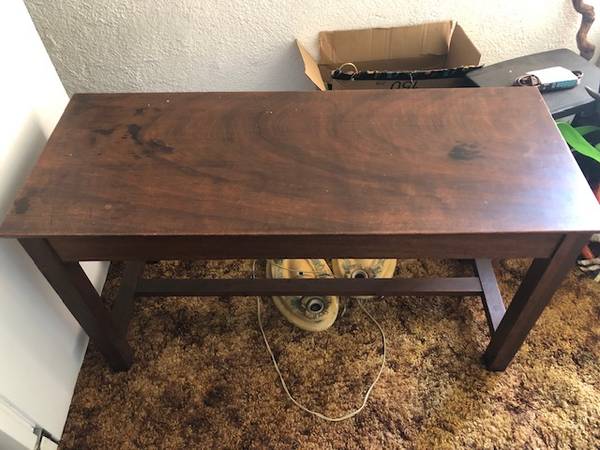 Wood Piano Bench. Good condition. Length: ~ 37 ¾” Depth: ~ 15 ½” Height: ~ 20 ¼” Price: $50 CASH ONLY Please click on the 'more ads by this user' link to see other items I am selling.