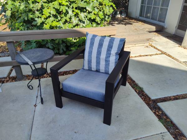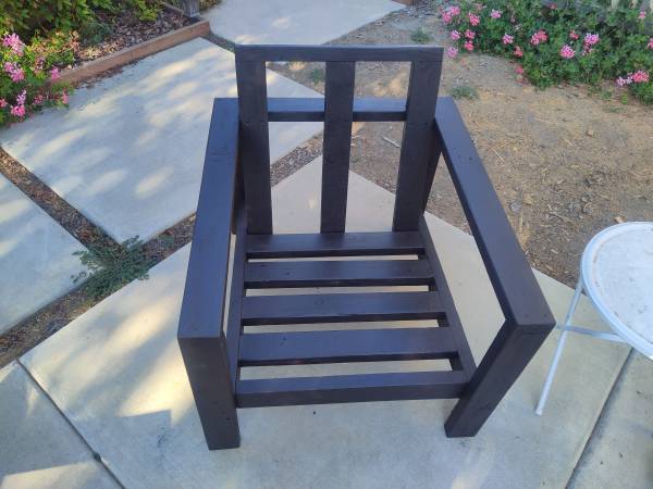 These Patio chairs are hand made by me, I will build them as they are ordered. I will paint them a dark color, as pictured, the cushions are are extra.