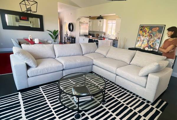 Super comfortable sectionals, made in Los Angeles with a lifetime warranty. Custom colors available; order in 12-15 business days. Lifetime warranty and floor models always on sale, up to 50% off! Don't miss out!
