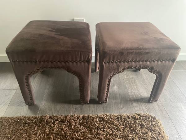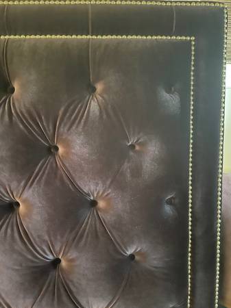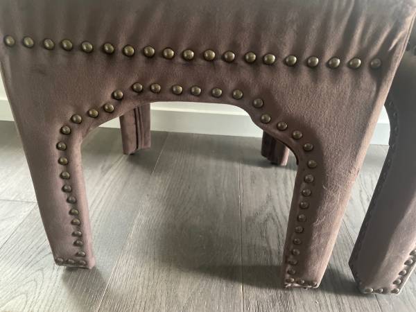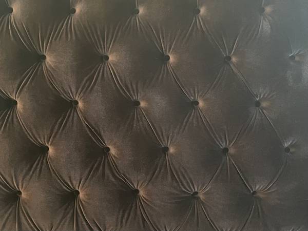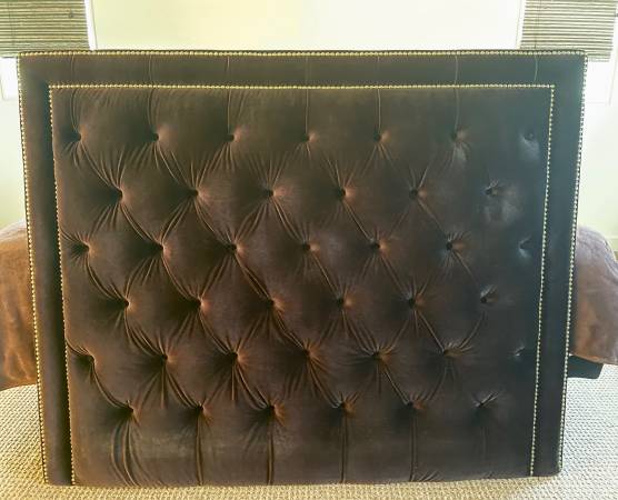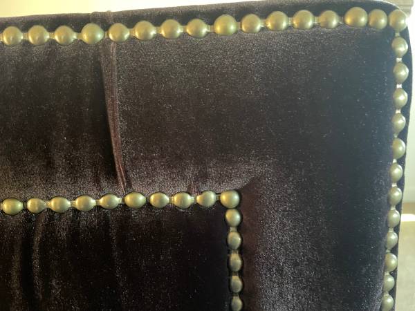 New in plastic package. Wall headboard Chocolate color. Velvet fabric Gold tone buttons Comes with 2 FREE matching velvet decorative chairs !! Queen sz Retail $600