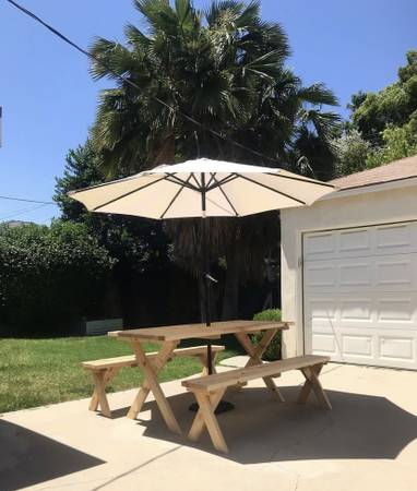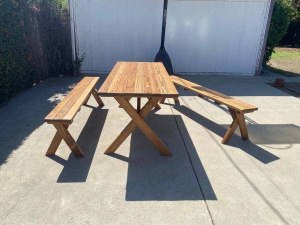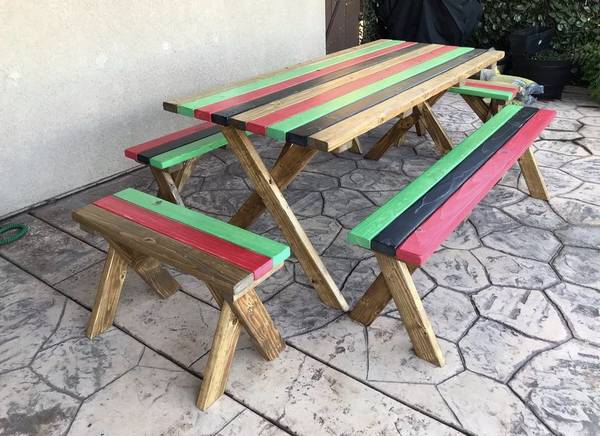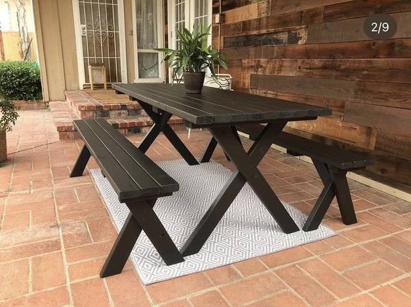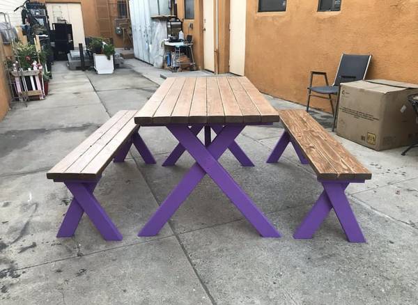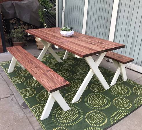 We take pride and love making our picnic tables for you.. we hand pick Each 2x4 piece at the lumber yard then let it dry and cured more in the shop then cut each piece to size then sand each piece individually, then paint or stain then finish with 3 coats of clear coat finish for exterior outdoor protection from sun and rain, then we Assemle it together and ready for delivery 🚚