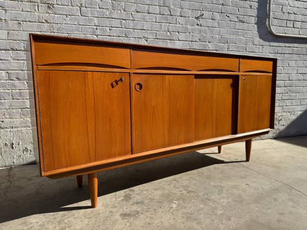 Incredible teak sideboard from Denmark. Comes with the original key to lock those nosy guests out of the good stuff! Felt lined drawer for cutlery. Fully restored and ready for a lifetime of use!