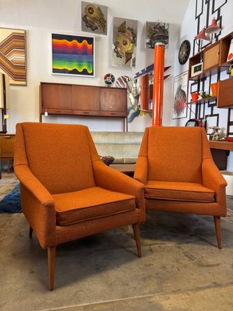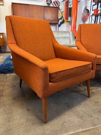 These are the cleanest original chairs! Take a step into a Time Machine at Sanford’s Vintage and purchase these authentic modern chairs from the 60’s. Super clean original Orange Tweed living room chairs that are extremely comfortable! From a smoke/animal free home :)
