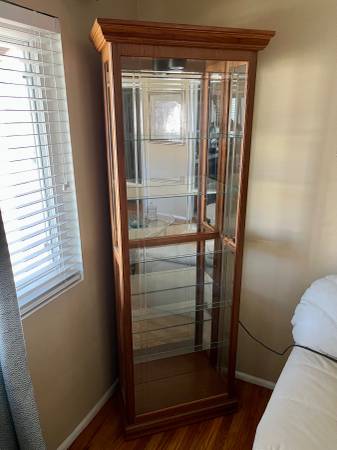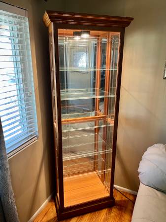 Excellent condition. Measurements: 27.5” L x 12” W x 76” H. 5 removable glass shelves. Kept in home with no smokers or pets. Local pickup only. Cash, PayPal, Venmo, and Zelle accepted.
