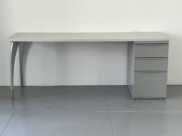 Straight Desk - Size 71" x 23.5" locking cabinet and modern legs.