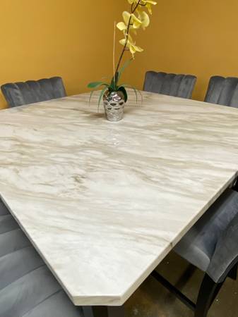 Price $599 (cash or zelle payment DEAL) FREE Delivery and assembly within 20 miles Table 48" x 48" x 36"h Faux marble top Brand new 7 pieces dining set faux marble top 100 days zero interest Zero...