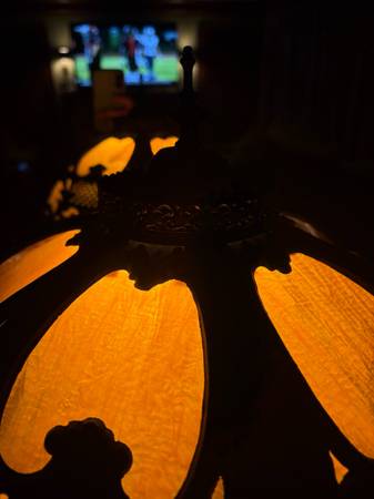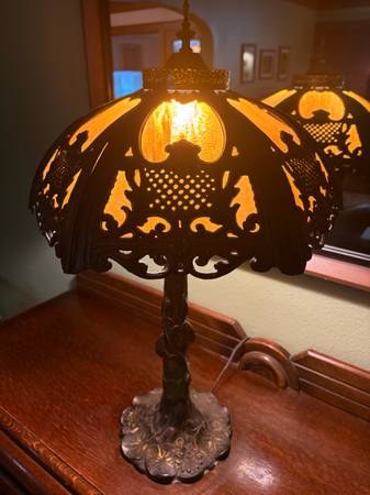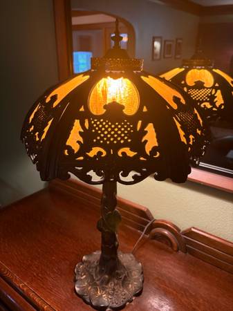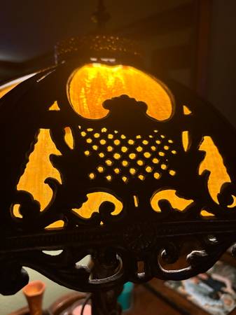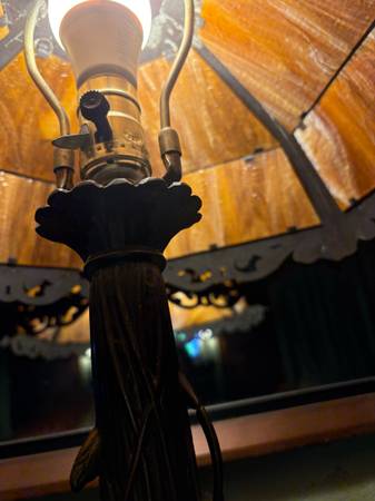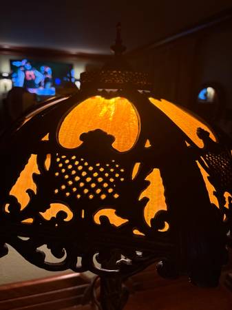Manner of Bradley & Hubbard 6-curved panel Vintage slag glass lamp Stunning lamp in excellent Condition