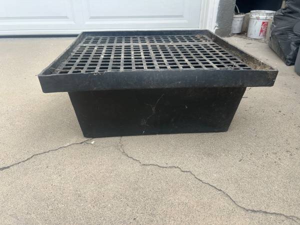 Free to water feature loving person. Fountain basin with grate top 2 ft wide x 2 ft long x 1 ft deep approximate Beleive 20 gallon capacity