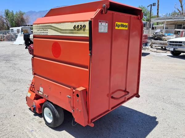 AgriMetal 4420 Leaf and Debris Collector. Honda gas engine with recoil start. Starts right up, all in working conditions. Nine five one 464 zero one 44