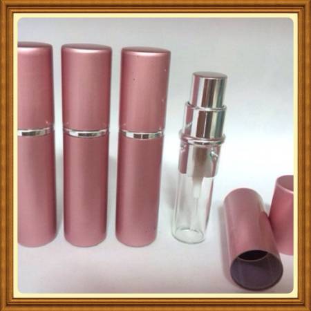 Four (4) refillable pretty pink aluminum perfume/fragrance (5ml) atomizers.