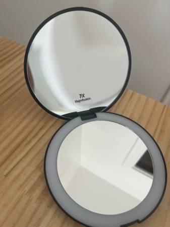 Great to use as a Christmas Gift! NEW IN BOX lighted compact mirrors with 7x and 1x magnification. Can be great for party gifts, or street vendors/flea markets to re-sell.