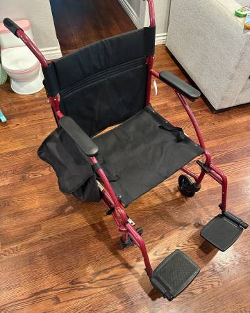 Brand new, never used. https://www.walgreens.com/store/c/drive-medical-flyweight-lightweight-transport-wheelchair-with-removable-wheels-19-inch-seat/ID=prod6254141-product