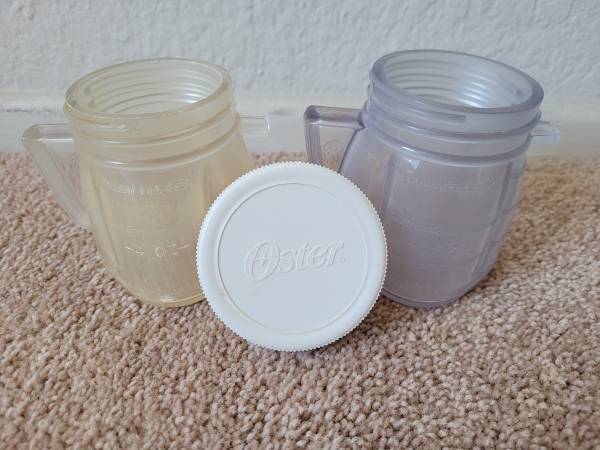 No Emails. For serious inquiry only, please call or text at (Seven 1 4) Nine-2-Eight Four-2-5-Five. Thanks! Original Oster Mini Cup Plastic Jar, fits most Oster Blenders. Two Cups for $10 Brand New...