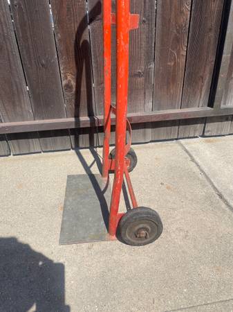 49 in. tall with 5 in. solid wheels, a little bent but in good condition $20. No Email or text, call