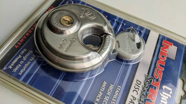 Chateau Heavy Duty Disc Padlock # C970 - 2-3/4" puck lock with with 2 nylon-headed keys