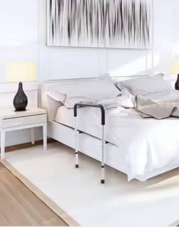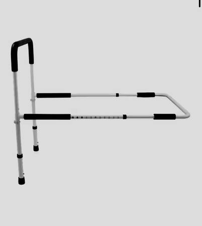 This metal assist rail slides under the mattress. Has strap to secure and feet that reach the floor for steadiness.