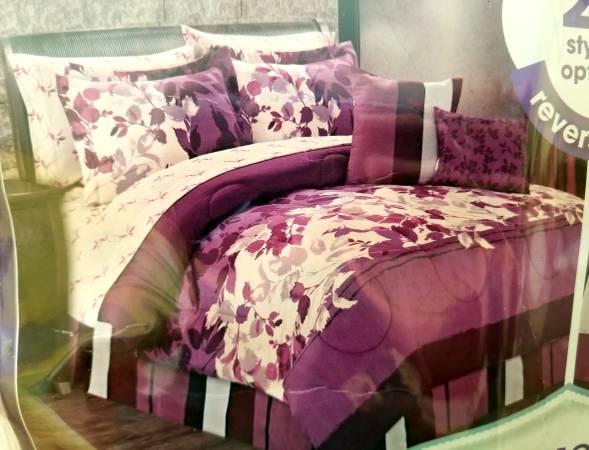 Brand new FULL size bedding set, never used! Selling for $40.00 OR BEST OFFER! 10 piece ensemble includes: 1 Reversible Comforter - 76" x 86" 2 Reversible Pillow Shams - 20" x 26" 1 Bedskirt - 54" x...