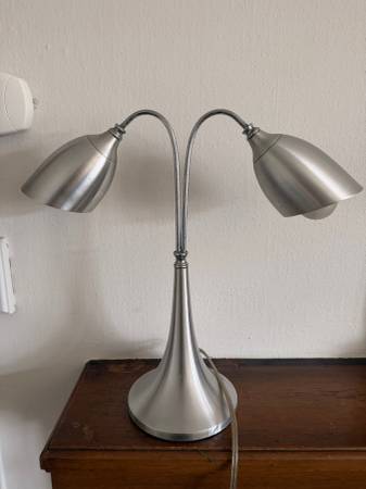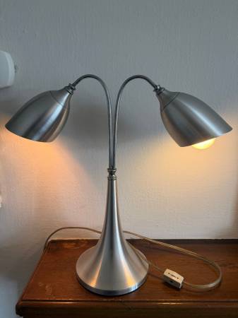 Used, but still good! Currently there are 2 different light bulbs in there which is why the color of the light in the photo looks different. Please note, these lamps take the smaller bulbs (see photos), not the regular sized ones -- which is why I'm selling, I don't have any more lightbulbs!